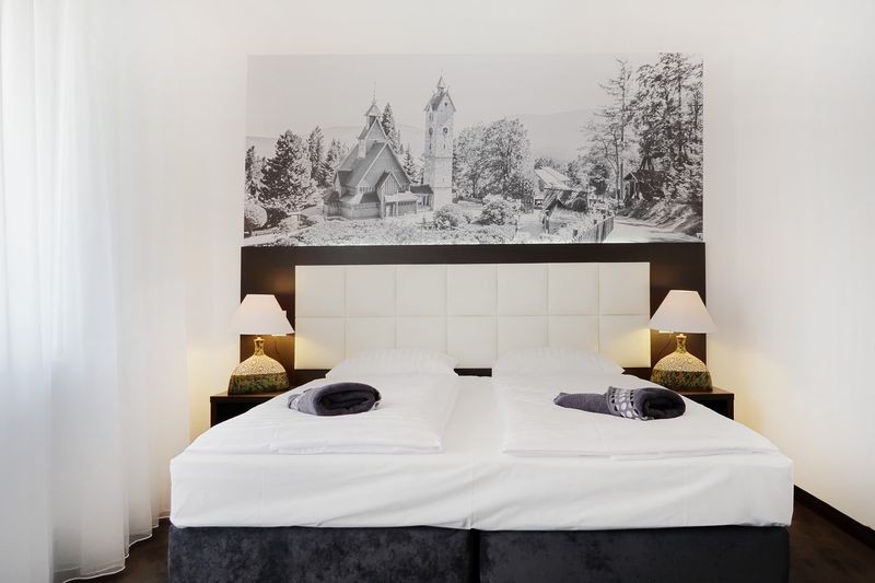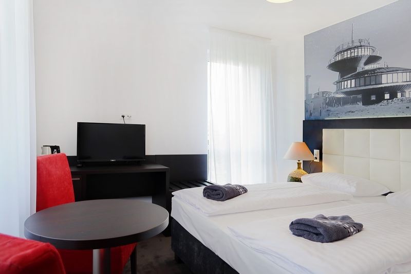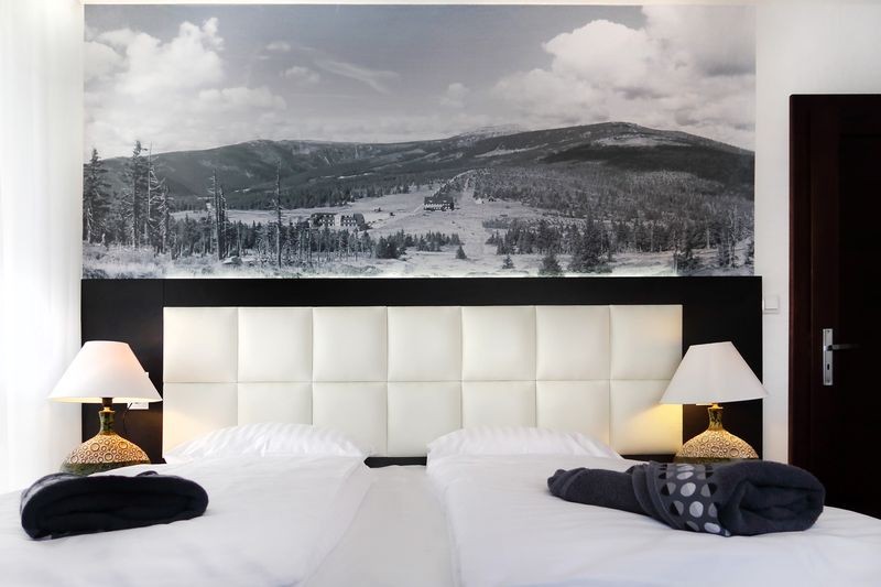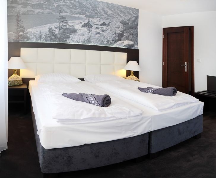 Zobacz nasz dwuosobowy pokój, który okaże się świetnym wyborem na romantyczny odpoczynek pełen komfortu i spokoju lub aktywny wyjazd w góry. Znajdziesz w nim duże i wyjątkowo wygodne łóżko, idealne na relaks po całodniowym odkrywaniu pięknego Karpacza i okolic. Dla tych, którzy zapragną dowiedzieć się, co dzieje się na świecie lub obejrzeć dobry film, mamy telewizor z telewizją satelitarną. Sprawdź wysoki standard i komfort dwuosobowego pokoju w Willi Karpacz – koniecznie obejrzyj nasze zdjęcia. Zapraszamy!